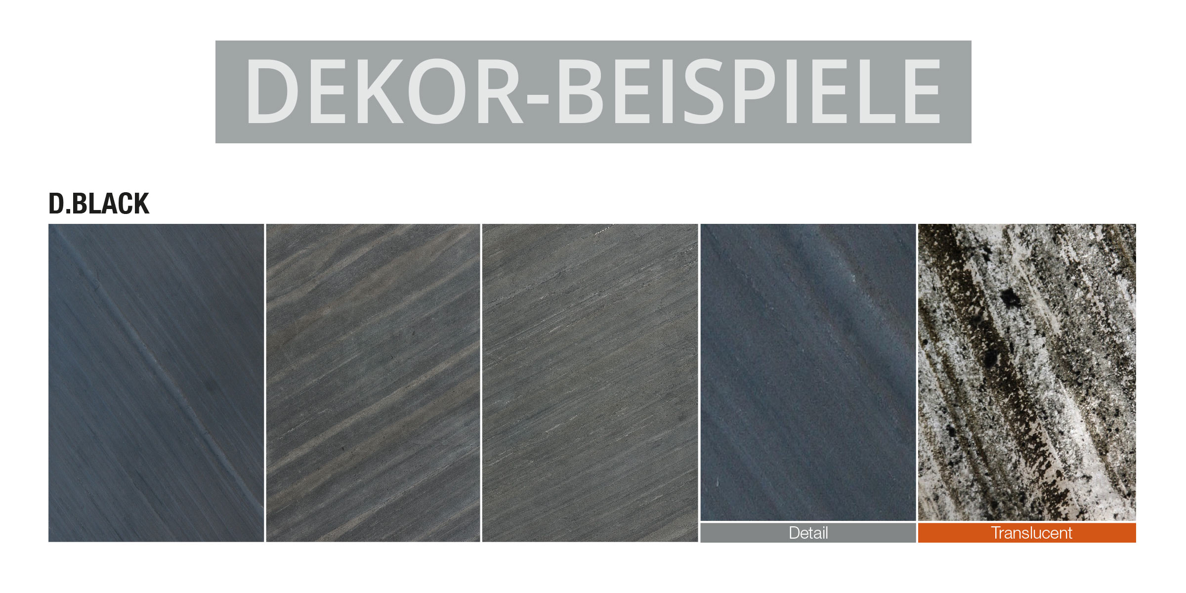 D.Black ist ein Glimmerschieferdekor mit einer echten Steinoberfläche. Der besondere Glimmereffekt entsteht durch einen erhöhten Anteil an Feldspat. Insgesamt ist die Oberfläche härter und weist eine stärkere Struktur auf, somit eignet sich dieses Material besonders für Wände als auch für Fußböden. Meistens bleibt der Glimmerschiefer sehr farbstabil in der Maserung der Oberfläche.