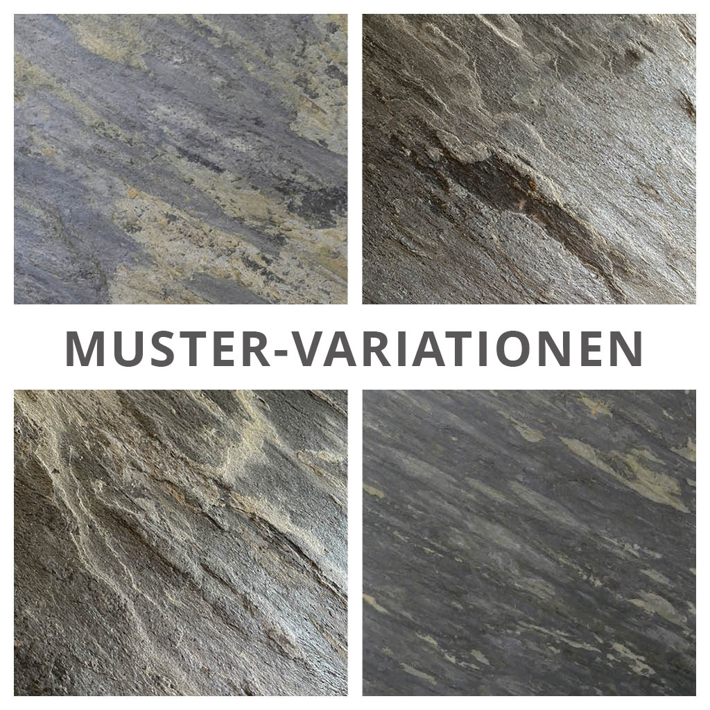 Die weichere Oberfläche bedarf unbedingt einer Versiegelung für den Gebrauch als Fußboden. Da es sich um ein echtes Naturstein Produkt handelt, können die Muster variieren.