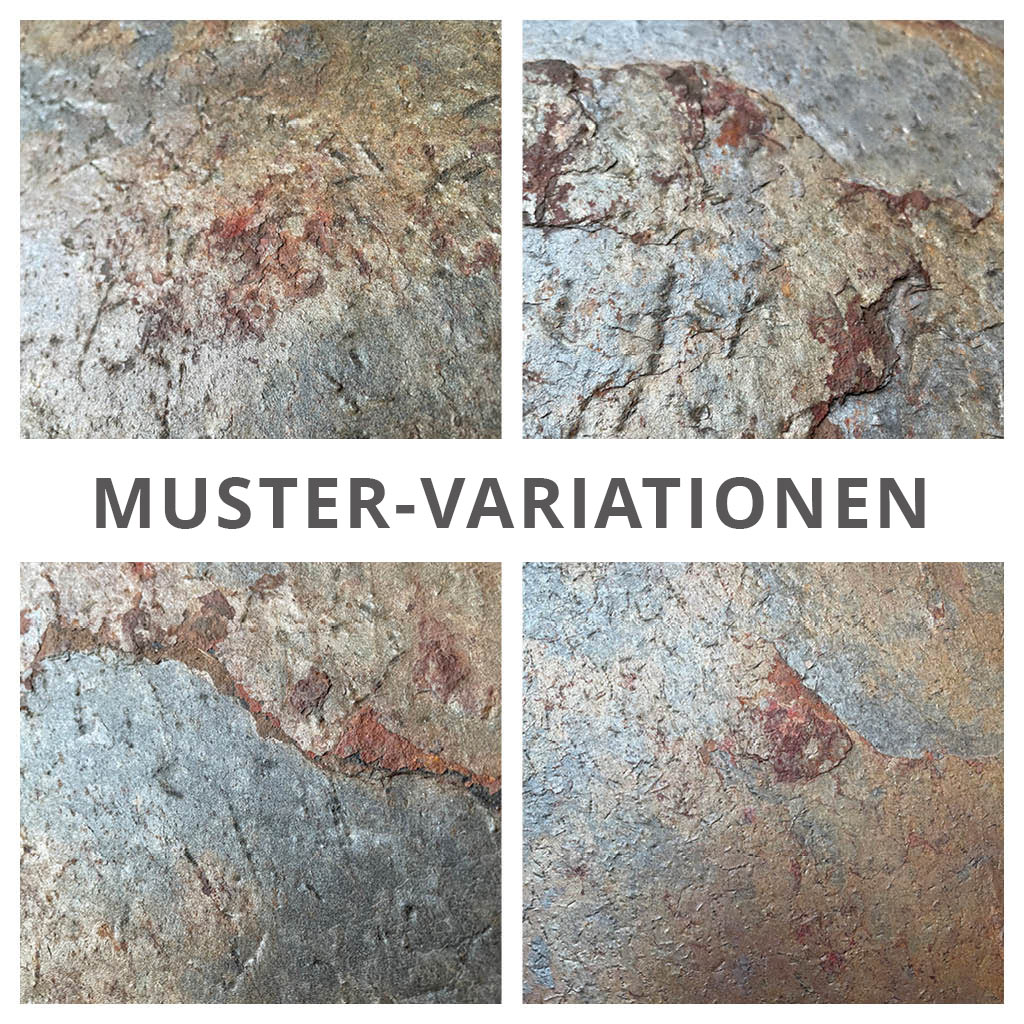 Die weichere Oberfläche bedarf unbedingt einer Versiegelung für den Gebrauch als Fußboden. Da es sich um ein echtes Naturstein Produkt handelt, können die Muster variieren.