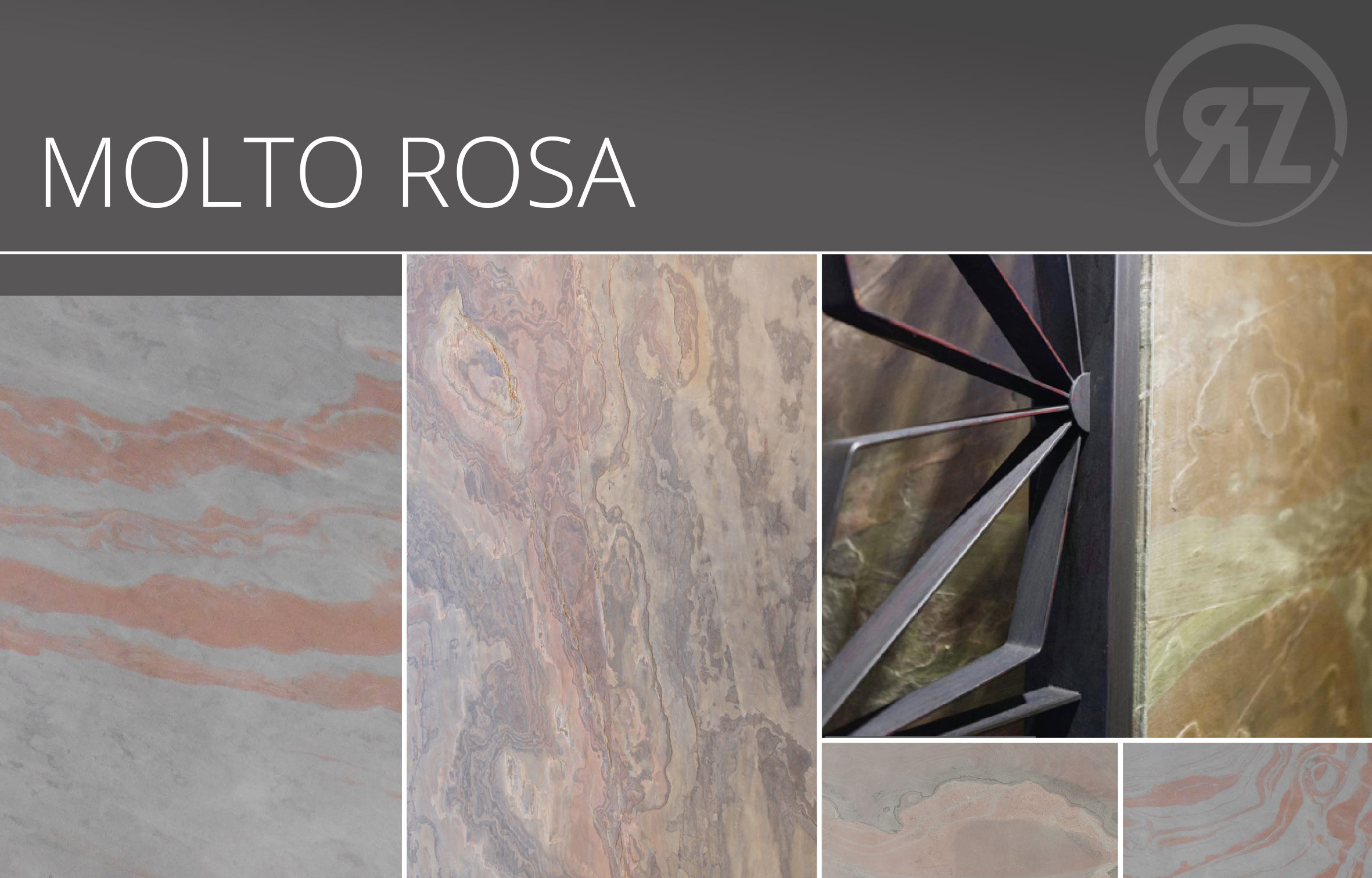 Molto Rosa ist ein Buntschieferdekor mit einer echten Steinoberfläche Der Buntschiefer zeichnet sich durch matte Farben, aber oft sehr stark durchwachsene Verläufe mit blumigen Mustern aus.